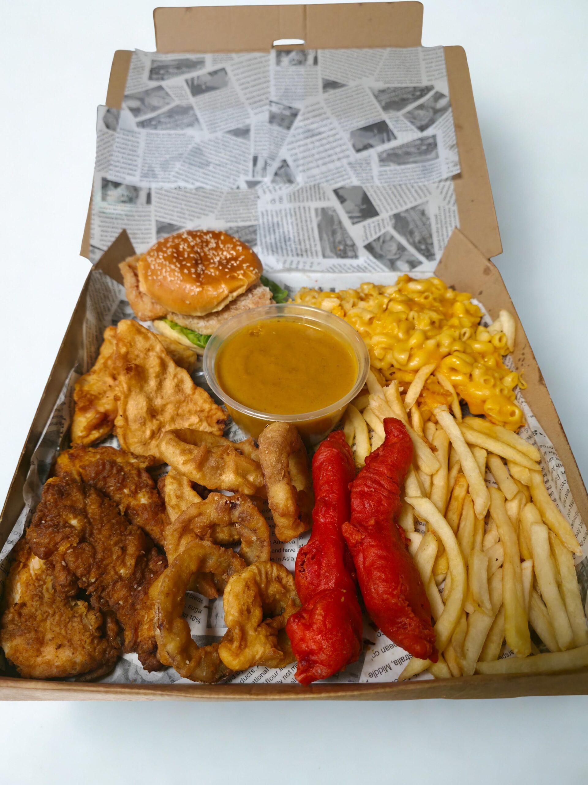 Price range: £19.99 through £28.99Price range: £19.99 through £28.99Spare ribs, chicken shish, chicken balls, pork link sausage, shredded chilli beef, Nashville chicken tenders, chicken tandoori, salt & pepper chicken, katsu curry chicken, chicken pakora, chips, fried rice &… -